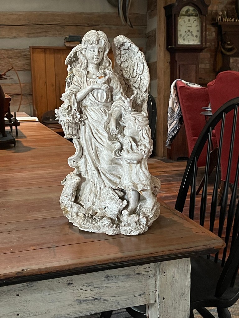 With some ingenuity and a lot of persistence, I got the angel put back together and repainted. I tried to blend in the glued areas with the rest of her because years of being buried had given her a unique and beautiful patina.