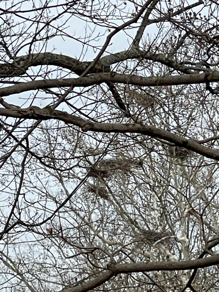 Across the farm field, following a faint set of tire tracks until we were at the edge of the woods near Graham Creek. We got out of our car and looked around curiously. Suddenly, Lauren clapped her hands. “Look there!” she said pointing. Rising from trees down around the creek were at least a dozen Great Blue Herons. I shot a choppy video which is included in an accompanying blog post.