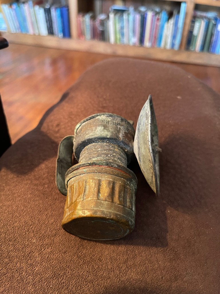 There lights down in the mine were carbide lamps. They put them on the front of their hard hats. He got the lamps ready every night. There were 2 compartments—the bottom held water, and the too filled with carbide. When he lit it, it produced a dim light, and the odor was acrid and very unpleasant. You can imagine several workers with these lights burning in an enclosed space. No wonder many of them, including my dad, developed lung problems. I still have his light, which at this time must be at least 80 years old. It survived many years of moves as the wife of an itinerant preacher.